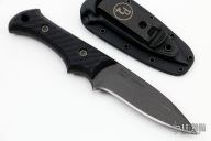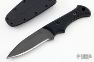 The Bloodshark fixed blade is Tracker Dan's most popular design.  The Bloodshark has a spearpoint point blade made from Nitro-V stainless steel with a Rockwell hardness rating of 59-60. The knife features a 3.5" blade that includes a Cobalt Cerakote finish for corrosion resistance and durability. Weighing in at only 5 oz, the Bloodshark is deceptively light, and it's smaller size makes it ideal for everyday carry. The beveled and contoured grips feature a diagonal texturing that offers a very secure grip without being overly aggressive or uncomfortable, performing well in wet or dry conditions.