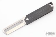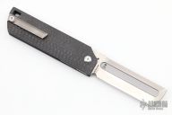 The MaximX (SpaceXi) Flipper version 1 is the LARGE brother of the SpaceX.  The MaximX is the second version of the SpaceX that runs on bearings that allows it to almost fly open.  Its complexity is in its simplicity.  It is sleek and simple, but with a complex 6 face grind with fullers.  It is a modern take on your grandfather’s pocketknife.  It is a pleasure to hold and use.  The Blade is VG-10 high grade knife steel and the handles are carbon fiber.  Comes with original box. Excellent condition.