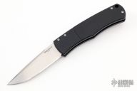 This Magic BR-1 Bolster Release Automatic from Pro-Tech Knives features a drop point stonewashed 154-CM blade with swedge. The handle has a black aluminum frame with checkered bolster. Black coated stainless steel clip is positioned for tip up carry. Lanyard hole in the pommel. Includes original box. Excellent condition.