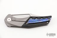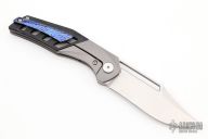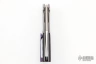 Adam Purvis joined forces with We Knife Co. to bring you his first APurvis Blades production line, the Primordial. Adam wanted to create a high quality EDC knife at a price point that normal working people could afford. The Primordial is nimble and lightweight in hand, with a modified clip point blade that provides versatile cutting performance with a sharp tip and a slight recurve edge. Tackle your daily cutting tasks in style with the Primordial from APurvis Blades. Features: Blade runs on a ceramic ball bearing pivot for authoritative deployment. Steel reinforced titanium lockbar offers secure lock up and over-travel protection. Item includes a milled titanium pocket clip for convenient everyday carry. This knife has a blasted titanium handle with custom marble carbon fiber scales, custom mokuti backspacer and tip up clip. It has a hand rub satin finished clip point recurve blade with swedge and thumbhole. Comes with green canvas micarta scales, clip and backspacer. Has a couple light scratches, otherwise excellent condition.
