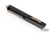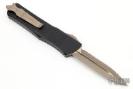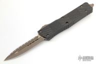 This 142-15 APCFS Combat Troodon from Microtech Knives features a bronze coated double edged spear point blade with fully serrated top edge. The handle is comprised of a Carbon Fiber Top and aluminum base with bronze coated hardware and tip down clip. Glass breaker and lanyard bail on pommel. Includes original box and papers. S/N of 418 and dated 08/2021. Excellent condition.