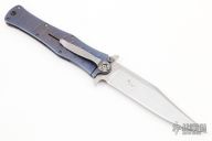 The CUDA Maxx 5.5 in. from Camillus features a clip point blade made of D2 tool steel with a tumble finish. Handle is anodized titanium. Frame lock. Includes stainless steel, tip down pocket clip. Nice detent, lockup and blade seating. Has scratches and scuffs, has been used and carried, otherwise good user condition. Comes with original box, zippered case and papers.