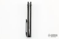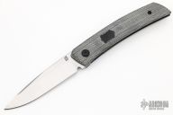 This F22 was designed by Jared Oeser, manufactured by Reate Knives and features Lee Williams Kickstop.  This knife features a satin finished blade with a notched flipper tab.  The handle has black micarta scales with a pvd coated titanium backspacer, tip up pocket clip and escutcheon. The knife opens with the use of Lee Williams' Kick Stop flipper.  Includes the original box.  New from Maker!