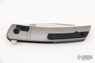 F22 KickStop Flipper Knife, Machine Satin Blade, Titanium Handles,Option 2 Black PVD Accents