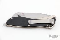 This Griplock Folder by Boker features a bead blasted blade with dual thumbstuds, notched thumbrest and flipper. The handle has black aluminum scales and a silver aluminum frame, has a tip up stainless steel clip. Has a couple light marks, excellent condition otherwise.