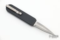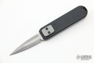 This 007 Auto by ARS and Darriel Caston features a stonewashed double edged blade. The handle is black aluminum with a tip up stainless steel clip. Comes with a zippered case. Excellent condition.