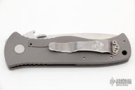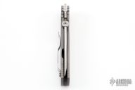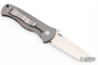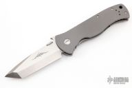 This Custom HD-7 features a satin finished chisel ground tanto blade with a knurled thumb disc and wave.  The handle features a bead blasted titanium frame with a tumbled stainless tip up pocket clip.  Black G-10 Backspacer.  Includes the original box and padded zippered case.  Nice detent, lock up and blade seating.  Excellent Condition.