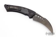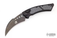 This Hawk Auto by Microtech Knives features a DLC stonewashed hawkbill blade. The handle has a black aluminum frame with carbon fiber inlays, DLC hardware and tip up clip. Dated 12/2020 and s/n 264. Comes with original box and papers. Has a couple light scuffs, excellent condition otherwise.
