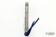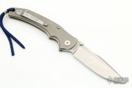 The Swiss Border Guard folder from Swiss knife maker H. P. Klotzli is a knife for the gentleman with tactical demands. Designed by Dietmar Pohl with a titanium handle shaped for a number of different hand positions for different uses. If you are familiar with Klotzli folding knives, you will notice that this one is just a bit thicker than what you would normally expect, allowing for more power for more aggressive use. The 3-1⁄2" hand-ground blade of Bohler N690 stainless at about 59 Rc. has a polished bead blast finish. The blade locks in the open position with a button lock making it easy to release, but secure in the open position. Ships with a right-handed tip up single position pocket clip. Excellent Condition.