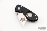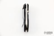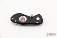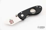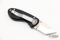 This knife by Al Mar features a chisel ground tanto blade with single knurled thumbstud. The handle has a black linen micarta frame with satin finished stainless steel liner and backspacer, blade stainless steel clip, tip down carry. Has some light scratches, otherwise excellent condition.
