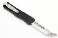 This Troodon by Microtech Knives features a stonewashed Hellhound blade with satin flats and false top edge. The handle has a black aluminum frame with tip down blasted stainless steel clip and hardware. Comes with original box and papers. 09/2022 and #098. Excellent condition.