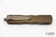 This Dirac Delta OTF automatic by Microtech features a D/E Bronze Apocalyptic finished blade with a full serrated edge. The handle is aluminum with antique bronze finish, bronze Apocalyptic stainless steel tip down clip and matching finished hardware. Serial number 080 and dated 07/2021. Comes with original box and papers. Excellent Condition.