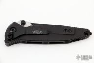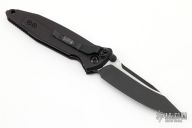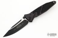 This Socom Elite from Microtech has a black/satin blade with dual thumbstuds and notched thumbrest. The handle has a black aluminum frame with non-slip rubber inserts and a tip down stainless steel clip, black hardware. Dated 11/2018 and S/N 3121. Includes original box and paperwork. Excellent Condition.