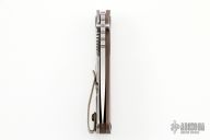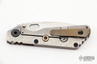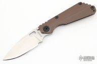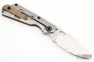 This SNG framelock folder by Strider Knives features a stonewshed drop point blade with a notched thumbrest.  The handle features a G-10 and stonewashed titanium frame with a bronzed titanium tip up pocket clip.  Includes the original pocket clip and strider pivot tool.  Excellent condition.
