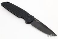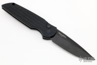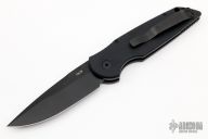 This TR-3 has a black blade with a plain edge, and black grooved handle. Black stainless steel clip, tip up carry. Comes with original box and papers. Excellent condition.