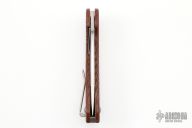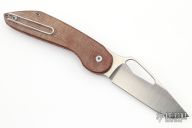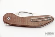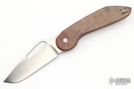 This Avant liner lock by Luft Concepts features a satin finished drop point blade with a large thumbhole.  The handle features micarta scales over bead blasted liners and backspacer with a stainless steel tip up pocket liner.  Includes a padded zippered case and papers. Serial # 26.  Nice detent, lock up and blade seating.  Excellent condition.