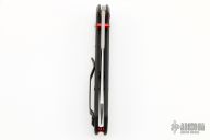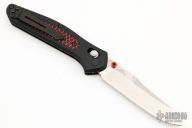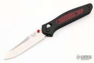 This 940-1701 Osborne Axis Lock Folder from Benchmade has a tumble finished CPM-20CV clip point blade with false top edge and dual thumbstuds. Handle has black G-10 scales with red C-Tek inlays, red standoffs and black finished stainless steel tip up clip (RH/LH Reversible). Knife has centered blade seating and strong lockup. Comes with original box and papers. Excellent condition.