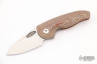 The blade shape evolved over months based on customer input. We always make sure our bevels are wide so that our full flat grind can be thin enough to be sharpened to a razor edge. TRM has earned a reputation for slicy knives right out of the box and the Nerd is no exception. The tip is strong for its use as a utility knife- cutting open boxes, cutting strings etc. We won’t call it “prying” if you use it occasionally to remove a staple.