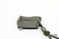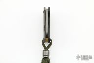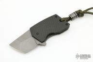 This Stub Menovade features an acid tumbled blade with a flipper. The handle has a carbon fiber and stonewashed titanium frame. Excellent condition. Comes with a Damascus bead.