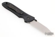 This Emerson Raven features a stonewashed tanto blade with thumb disc. The handle is black FRN with titanium liners tip up carry, lanyard hole at the butt. Comes with original box and papers. Excellent Condition. 25th Anniversary 1997-2022.
