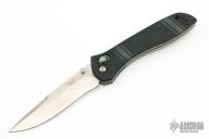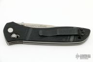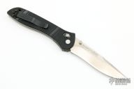 This 710 McHenry & Williams designed folder by Bencmade features a satin finished blade with swedge and dual thumb studs. The handle is comprised of black G10 scales over stainless steel liners and black polymer backspacer. Lanyard hole in pommel and black coated stainless steel tip down clip is reversible for right or left hand carry. Excellent condition.