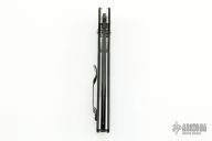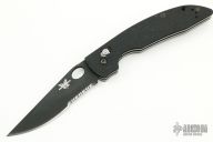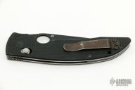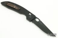 This 806D2 AFCK Axis lock folder by Benchmade has a black spear point blade with thumb hole, and notched thumbrest. Handle is black G-10 over titanium liners, black fiber back spacer, lanyard hole. Tip up reversible pocket clip. Includes a zippered case. Has some light scuffs, otherwise excellent condition.
