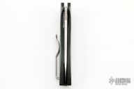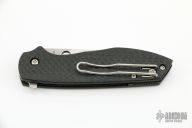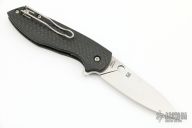 This Positron by Spyderco is a Brad Southard design, it features a tumble finished blade with notched thumbrest, thumbhole and flipper. The handle has a carbon fiber frame, black G-10 backspacer with stainless steel liner and a tip up paper clip style clip, left or right reversible. Excellent condition. Comes with original box and papers.