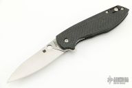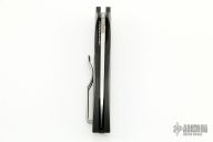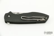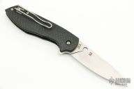 This Positron by Spyderco is a Brad Southard design, it features a tumble finished blade with notched thumbrest, thumbhole and flipper. The handle has a carbon fiber frame, black G-10 backspacer with stainless steel liner and a tip up paper clip style clip, left or right reversible. Excellent condition. Comes with original box and papers.
