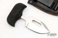 This "Urban Skinner" Push Dagger by Cold Steel has a satin finished spear point blade with a sharpened top edge, hidden tang, .185" blade stock, 1.296" depth. Handle is non-slip polymer. Has a few light scratches, otherwise excellent condition. Comes with black leather sheath with clip. This is an early version of the Safe Keeper.