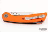 The Nati Amor designed Spyderco Subvert is a large folding knife revealed at Spyderco's 2018 Amsterdam Meet. This folder sports a clean, balanced aesthetic based on Nati's handmade Sabotage custom. It features orange G-10 scales over thick bead blasted titanium liners. Its blade has a satin finish, high flat grind, and a generously bellied edge. Add a unique Nati Amor design to your collection today! Features: A heavy duty titanium liner lock offers dependable blade lock up. Stainless steel clip for tip-up pocket carry. 3D textured G-10 handle scales provide a secure and comfortable grip. Comes with original box, papers. New condition.
