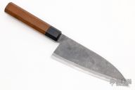 The Debabocho is a heavy knife traditionally used for filleting fish. The blade is Stainless Clad Aogami Super Steel (NAS) which is a high-carbon steel alloy with vanadium and is ground on both sides. As with all of Takeda's knives, it has a strong sharp edge. The octagon shaped wood handle is easy to hold. 181mm cutting edge, .275" blade stock and 2.380" blade depth. Brand new from maker. Comes with original box.