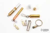 Lot of 8 Titanium, Copper, Brass, Stash Cans Plus Parts, in varying size and shape. Excellent condition.