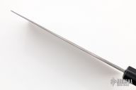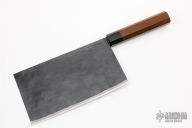 The blade is Stainless Clad Aogami Super Steel (NAS) which is a high-carbon steel alloy with vanadium. As with all of Takeda's knives, it has a strong sharp edge. The octagon shaped wood handle is easy to hold. 206mm cutting edge. New from maker. Comes with original box.