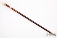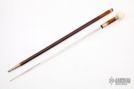 This antique sword cane features aa polished and etched blade by Toledo. The cane is made from Malacca wood and the handle is an antique ivory que ball (either a 6 or 9). Has some patina and scratches, but overall good condition for its age. NOTE: the closed length will refer to the length when the sword is sheathed in the cane. The overall length is just that of the sword and handle. Believed to be German made, and from early/mid 1800s