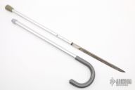 This Defensive Sword Cane by Barry Dawson (it is not marked) features a spear point blade with false top edge, .205" blade stock and .744" blade depth, hidden tang construction. The handle is a normal looking cane. Excellent condition. The cane can be as long as 35.5" down to 33.5"