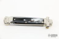 Angelo Campolin Sr. was born in 1923 in Maniago, Italy. He worked on perfecting his knife making skills before WWII and at this time made his first switchblades. After the war, in 1947 he started his company and made 30 stilettos with the marking “Angelo Campolin”. In the 1970’s Angelo’s son Gianni started to work in the company and they were specializing in folding hunting knives and also manual folding stilettos for the Robert Klaas company in Solingen Germany with their Kissing Cranes mark. In 2002 American switchblade collectors Dan Fuller, Brad West, and Tim Zinser were visiting Maniago and enjoying a few glasses of wine in a bar with Angelo Jr. and Gianni. The discussion was about a new name for some knife projects they wanted to pursue. It was Brad West that suggested the tang stamp should be AGA, for Angelo, Gianni, Angelo, thus representing three generations in the knife making business. The Campolins liked it and it stuck. In the beginning it was just a few items, but grew to the point where now there are 12 models and different scale options. The goal has been to offer quality switchblades using the old methods and traditions. Being a collector himself, Angelo Jr. knows what others like. The company headquarters has moved to Austria with production still in the original Maniago shop, as well as the others in Maniago that produce the knives for A.G.A. Campolin.
