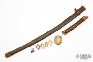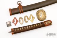 This is antique furniture for a katana that has an approximately 26" blade. Comes with a brass tsuba, seppas, silver habiki, handle and saya. Has some wear, otherwise good condition. This is believed to have been made prior to WWII for an officers sword.