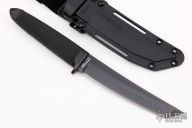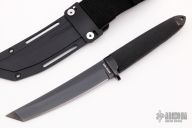 This Master Tanto by Cold Steel features a black tanto blade with .193" blade stock and 1.113" blade depth, hidden tang construction. Guard and pommel are black stainless with a textured Kraton grip. Comes with black Secure-Ex sheath and original box. Excellent condition.