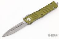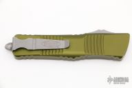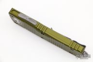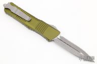 This Combat Troodon OTF automatic features an Apocalyptic finished D/E blade with a fully serrated edge. The handle has an OD Green aluminum frame with stainless steel clip. Glass breaker. Serial number 39285 and dated 07/2022. Comes with original box and papers. Excellent condition.