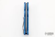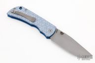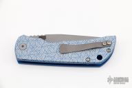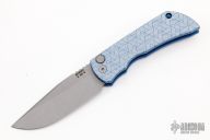 This MAC2 features a stonewashed clip point Magnacut blade with a notched thumbrest. The handle features a blue/white aluminum frame with a stonewashed tip up pocket clip. Comes with original box and COA. New From Maker!