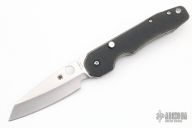 This Smock by Spyderco has a satin finish sheepsfoot style blade. The handle features canvas micarta scales over stainless steel liners with a stainless steel pocket tip up pocket clip. Excellent condition.
