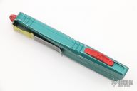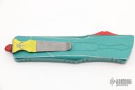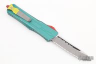 This Combat Troodon by Microtech features an Apocalyptic finished tanto blade with full serrated edge. The handle has a distressed green aluminum frame with red hardware and a tip down stainless steel clip. Comes with original box and papers. Dated 07/2022 and s/n 2455. Excellent condition.