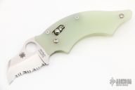 This Sprint Run DoDo features a satin finished hawkbill blade with thumbhole. The handle is jade G10 with a tip up clip, right or left carry. Axis lock with steel ball. New condition. Comes with original box and papers.