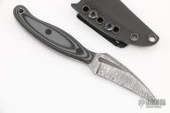 This L-via by Kopis Design features an acid etched hawkbill blade with fullers and false top edge, .147" blade stock and 1.026" blade depth, full tang construction. The handle has black/grey G-10 scales. Comes with a kydex sheath with clip. Comes with original box. Excellent condition.