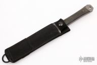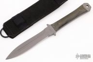 The Freedom Fighter Dagger by Barry Dawson is designed for heavy-duty work. The blade is double edged and has fullers, .267" blade stock and 1.075" blade depth, full tang construction with black linen micarta scales. Comes with a black nylon sheath. #26 on the blade. Excellent condition.