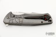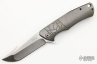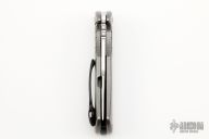 This Framelock Model S4+ by Michael Zieba features a satin finished blade with notched thumbrest and flipper. The handle has a flame finished titanium frame with a custom "Angry Bird" tip up clip with red screws and a black backspacer. Nice detent, lockup and blade seating. Has bearings and a ceramic detent ball. Comes with a zipper case. Has a chip in the red coating on one of the screws. Excellent condition.