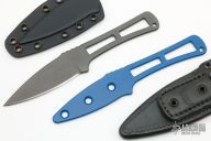 This Utsidihi by RMJ Tactical features a grey coated blade and handle with a lanyard hole in the butt, .166" blade stock and 1.164" blade depth. Comes with a trainer, leather sheath, kydex sheath with IWB loop and belt clip option, original box and papers. Blade Steel: Nitro-V. Excellent condition.