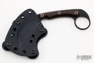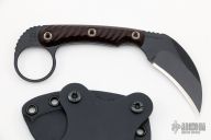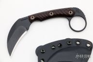 The Korbin is an easy to conceal defensive fixed blade knife. Karambit style knives like the Korbin are great back up blades for those that carry a handgun daily. They are lightweight, deploy quickly and have no moving parts to fail. They are gross motor skill tools as well, meaning no special skill is required for effective use. The aggressively shaped talon blade on the Korbin is made from Nitro-V stainless steel and features a Black Elite Cerakote finish for wear and glare resistance. The Korbin is designed to work in both reverse and standard grips, and the 1 1/8" finger hole is large enough to fit most finger sizes. The Korbin comes with a molded kydex sheath that includes a two-way belt adapter allowing ambidextrous, vertical and horizontal carry options. The sheath is compatible with our optional MAD Straps if you would like to carry IWB (Inside Waist Band). You can find the optional MAD Straps HERE The sheath is also compatible with most popular clips and mounts like the Discreet Carry Concepts Clip and Ulticlip. Comes with original box and papers. Has a couple light scuffs, excellent condition.