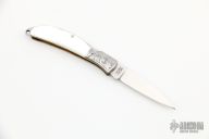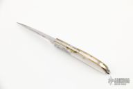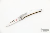 "The diminutive Osprey™ an Al Mar Classic since 1979, offers timeless design and peerless craftsmanship usually found only on the finest custom hand made knives; all in the smallest, highest quality, front lock made today. The Osprey™ features stainless steel bolsters, brass liners and comes with a finely crafted leather pouch embossed with the Al Mar logo."
