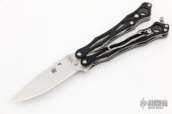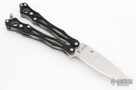 This Spyderfly 2 Balisong by Spyderco has a satin finished blade. Handle is black G10 over stainless steel liners and stainless steel paper-clip style pocket clip. Comes with original box.  Excellent condition.